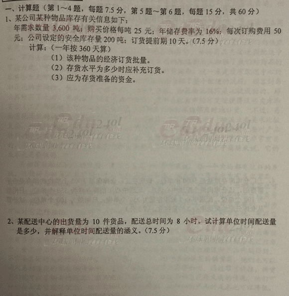 - 2012年5月二級物流師真題及參考答案2015-11-20