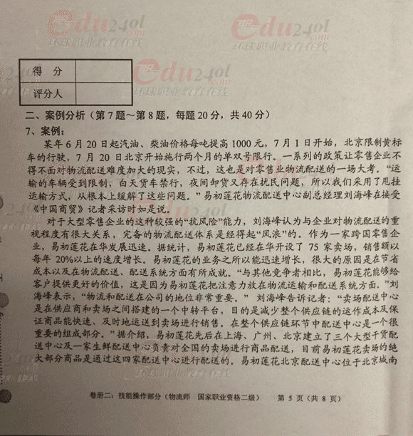 2012年11月物流師二級技能操作考試真題