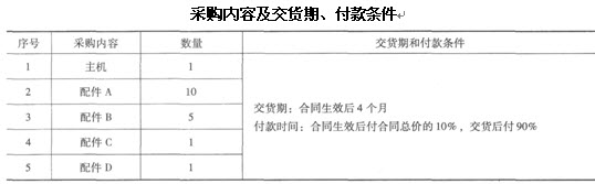 某機電產(chǎn)品國際招標項目,招標文件中規(guī)定的采購內(nèi)容及交貨期、付款條件見下表。