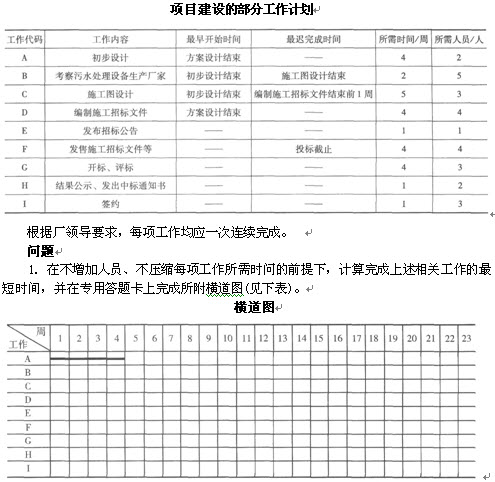 某政府投資的污水處理廠擴建項目,經(jīng)核準,由招標人自行組織招標。項目招標和建設(shè)管理工作由污水處理廠基建處具體負責。基建處有9名員工。方案設(shè)計結(jié)束后,項目建設(shè)的部分工作計劃見下表所列。