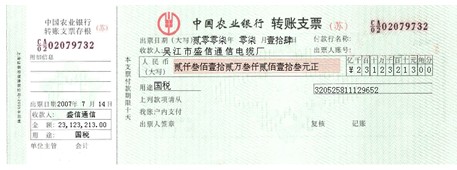 (2)轉賬支票:轉賬支票只能用于轉賬,不能支取現金。