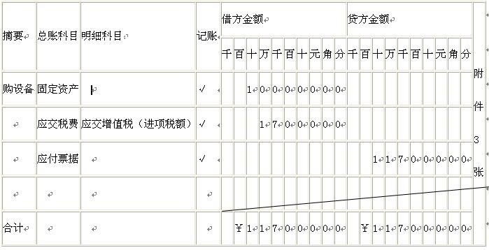 資料:2010年9月24日,莊園公司(一般納稅人)用商業承兌匯票購入不需安裝的生產用設備一臺,增值稅專用發票上注明價款100 000元,增值稅17 000元,設備已驗收入庫。(附件3張)