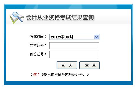 山東煙臺2012年9月份會計從業資格考試成績查詢通知
