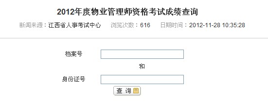 查詢入口:【江西2012年物業管理師成績查詢入口】