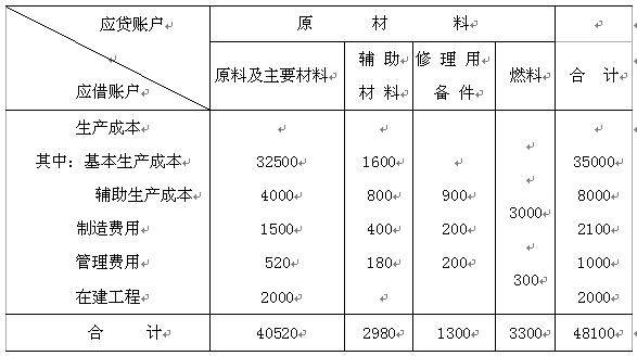 3.根據本月"發料憑證匯總表",分配材料費:基本生產車間生產產品領用材料80 000元,基本生產車間一般耗用材料1000元,行政管理部門領用材料2 000元,在建工程領用材料40000元。