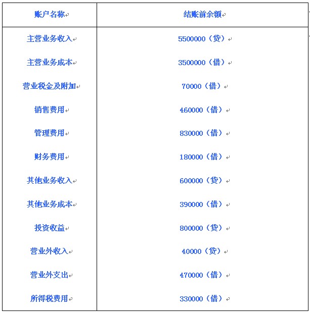 【例題22:教材194頁例19-19】某企業2010年底損益類賬戶的年末余額如下(該企業年末一次結轉損益類賬戶)。