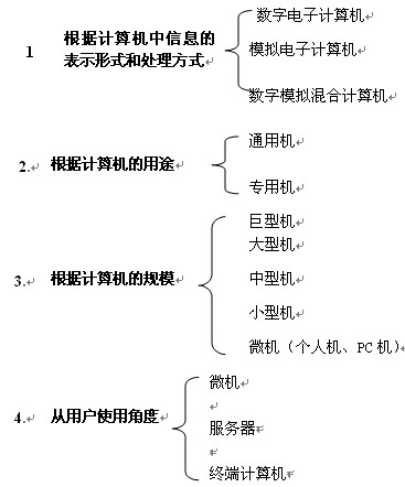 計(jì)算機(jī)有多種分類標(biāo)準(zhǔn),標(biāo)準(zhǔn)不同,分類結(jié)果不同。