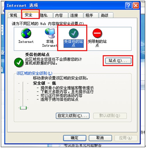在打開的選項中再依次找到安全――受信任的站點――站點,如下圖: