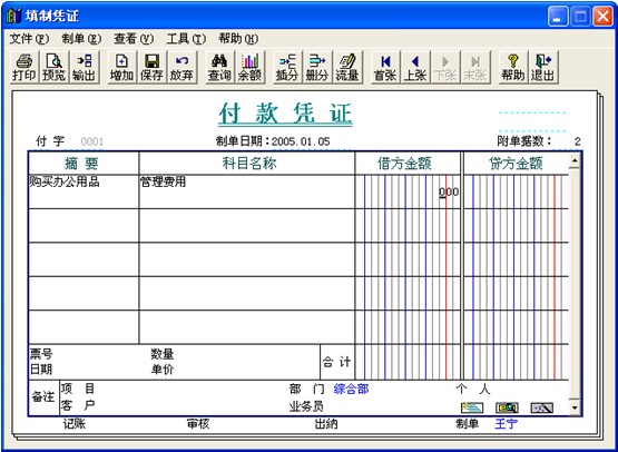 1.增加憑證。記賬憑證的內容一般包括兩部分:一是憑證頭部分;二是憑證正文部分。如果輸入的會計科目有輔助核算要求,則應輸入輔助核算內容。