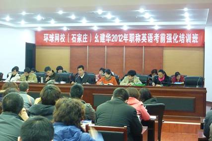 2012年3月18日位于石家莊北國商城西側 新京大酒店4層大型豪華會議室,成功召開環球網校(石家莊)幺建華2012年職稱英語考前強化培訓班,從早晨7:30分開始到晚上18:30近300位石家莊考生前來學習。