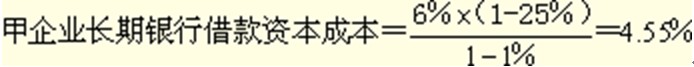 [例4―1]甲企業(yè)向銀行借款1 000萬元,手續(xù)費(fèi)率為1%,期限3年,借款利率為6%,假設(shè)所得稅率為25%,則