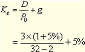 [例4―3]甲企業(yè)上一期股利D0=3元,預(yù)計(jì)長期的股利增長率g=5%,假定增發(fā)新股的發(fā)行價(jià)為32元,每股發(fā)行費(fèi)用為2元,則新股的預(yù)計(jì)成本率可計(jì)算為: