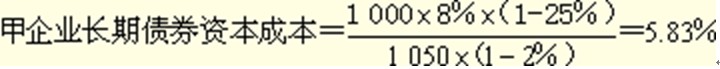 [例4―2]甲企業(yè)按1 050萬元發(fā)行債券1 000萬元,籌資費(fèi)用率2%,期限3年,債券票面利率8%,假設(shè)所得稅稅率為25%,則