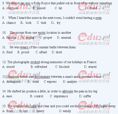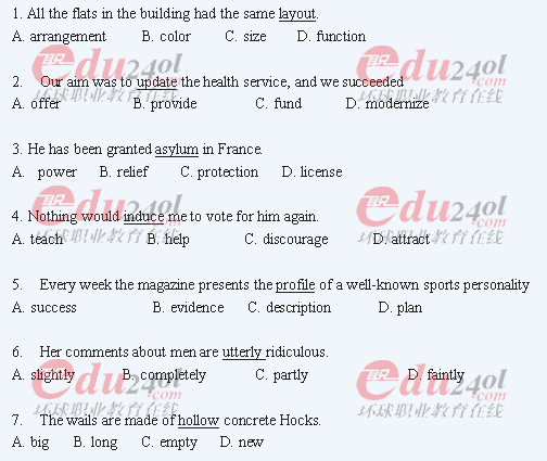 環球網校率先發布2012年職稱英語考試試題及答案-綜合類A級詞匯部分(試卷代碼12)