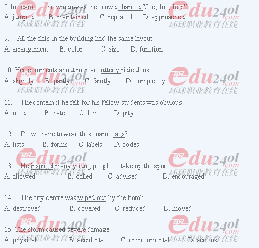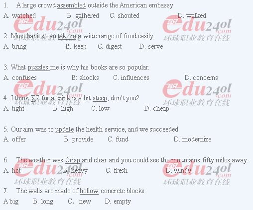 環球網校率先發布2012年職稱英語考試試題及答案-綜合類B級詞匯部分(試卷代碼22)