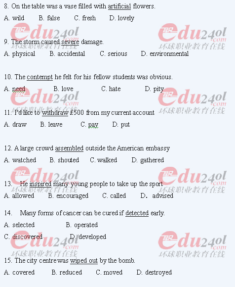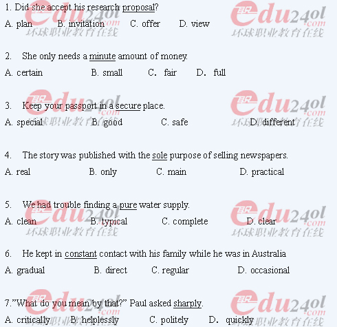 環(huán)球網(wǎng)校率先發(fā)布2012年職稱英語(yǔ)考試試題及答案-綜合類A級(jí)詞匯部分(試卷代碼31),
