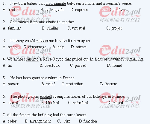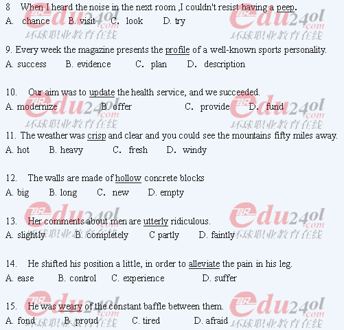 環(huán)球網(wǎng)校率先發(fā)布2012年職稱英語考試試題及答案-綜合類A級詞匯部分(試卷代碼11),