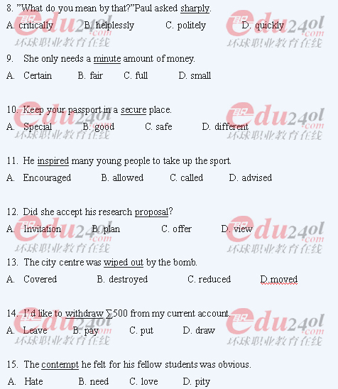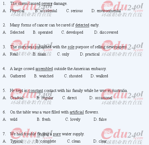 環球網校率先發布2012年職稱英語考試試題及答案-綜合類A級詞匯部分(試卷代碼33),