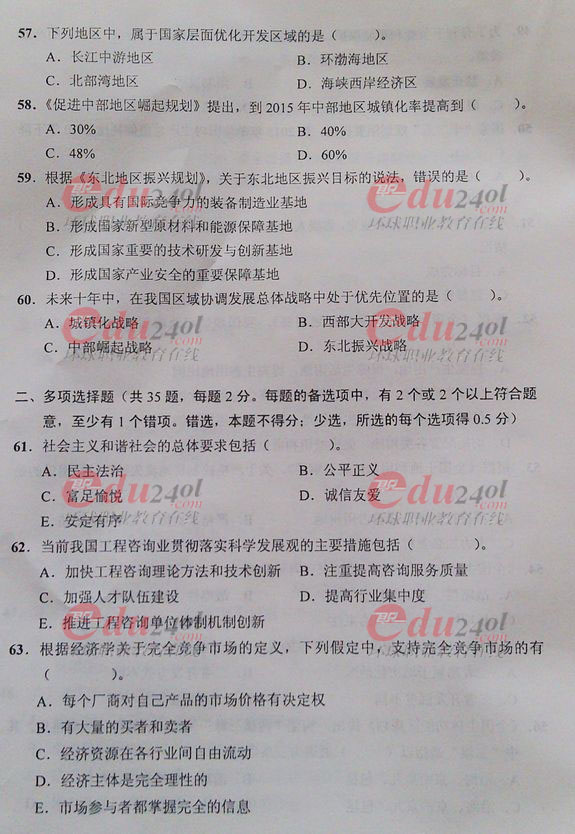 環球網校重獎征集2012年咨詢工程師試題,歡迎考生考后將試題反饋給網校,網校將在適當時候就2012年咨詢工程師考試試題作出點評!征集郵箱:edu24ol@163.com