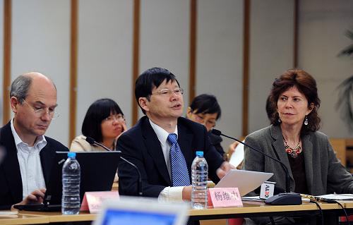 4月18日,中國疾控中心副主任楊維中(中)在新聞通氣會上介紹我國預(yù)防接種方面的問題。當(dāng)日,衛(wèi)生部、中國疾控中心、世界衛(wèi)生組織駐華代表處等單位聯(lián)合在北京召開世界預(yù)防接種周新聞通氣會,有關(guān)老師、學(xué)者在會上探討了通過免疫接種可預(yù)防的致殘或致死疾病。4月25日是我國“全國預(yù)防接種日”。新華社記者 何俊昌 攝