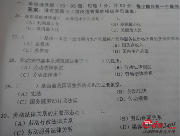 2012年5月人力資源管理師考試三級理論知識考試已經結束,環球網校在第一時間為考生及學員整理了真題,全套真題,網校本周將安排老師進行詳細點評。網校預祝學員們能夠取得好成績。