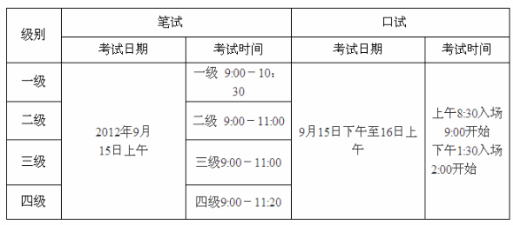 海南2012年下半年全國英語等級考試報名時間:截止時間為2012年6月22日