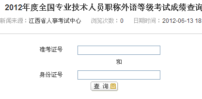 環球網校(9duwan.com)消息,從江西人事考試中心獲悉,2012年江西地區職稱日語考試成績于6月18日開始查詢,成績查詢地址如下:
