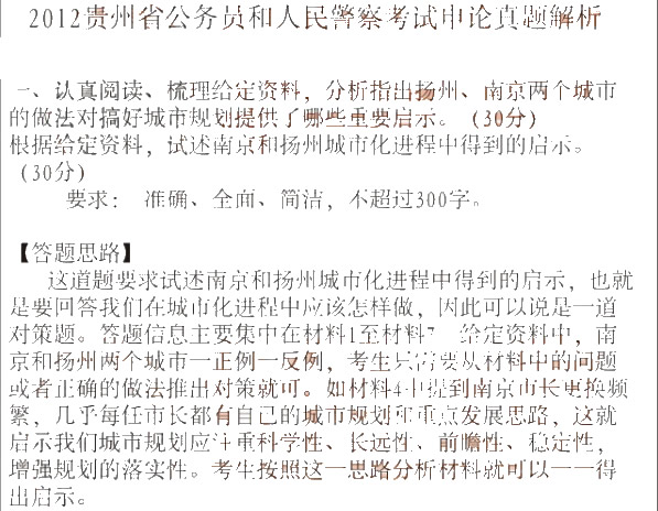 貴州省2012年公務員考試和招警考試《申論》真題解析
