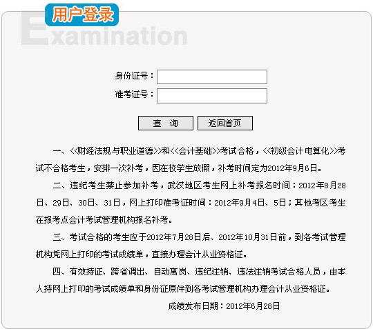 湖北省2012年上半年會計從業資格考試成績查詢入口