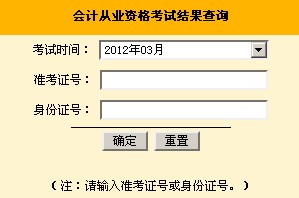 山東2012年3月份會計從業資格考試成績查詢入口