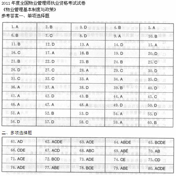 - 2014物業管理師考試《綜合能力》真題答案2014-09-16