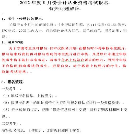 天津2012年度9月份會計從業(yè)資格考試報名有關(guān)問題解答