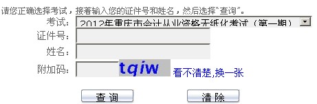 重慶2012年第一期會計從業資格考試成績查詢入口
