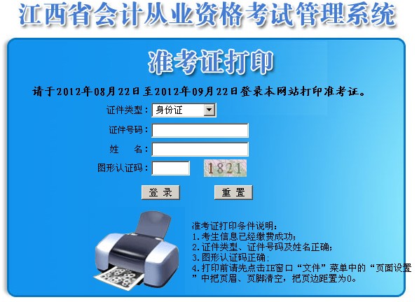 江西2012年會計從業資格考試準考證打印9月22日截止
