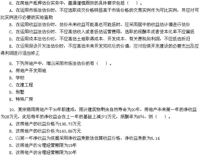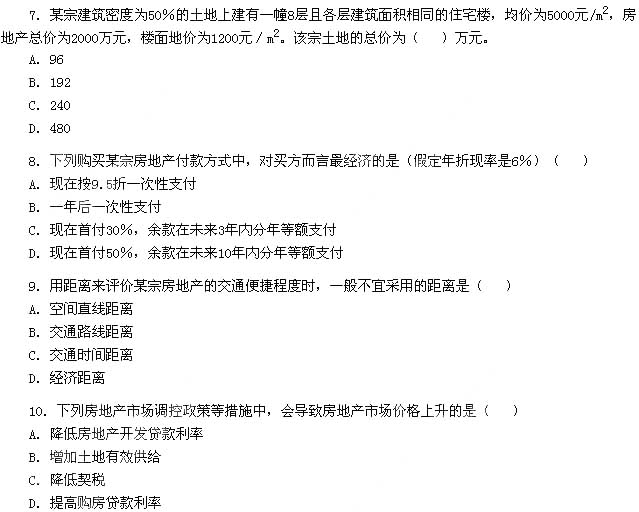 2010年房地產估價師《房地產估價理論與方法》真題及答案