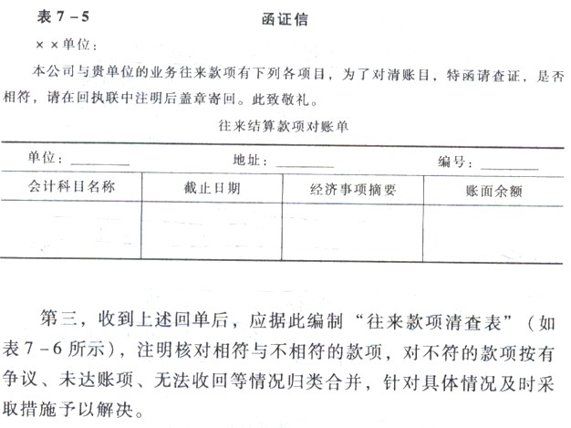 往來款項的清查一般采用發函詢證的方法進行核對。見表7-5