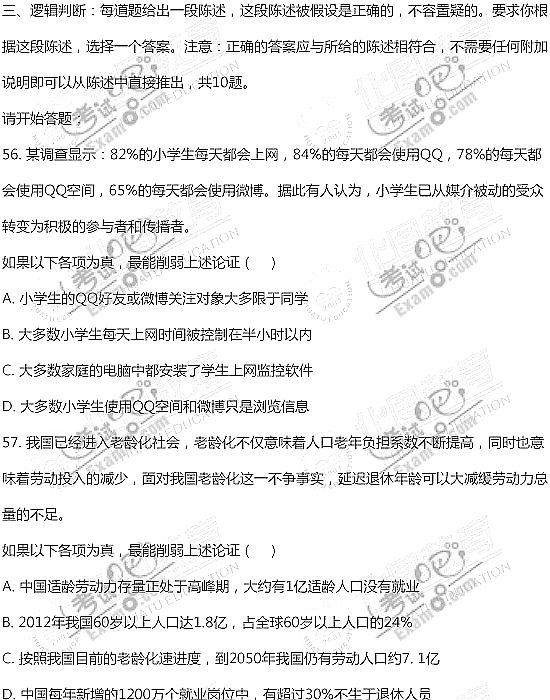 2013國家公務員網絡輔導火熱招生 2012年國考真題及答案解析匯總