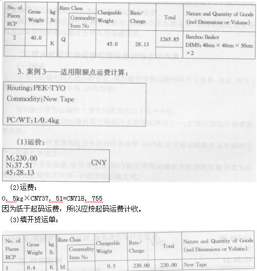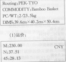 關于運價的計算,限于篇幅本文只對GCR,即普通貨物運費計算方法作一介紹,對于指定商品運價、等級貨物運價、比例運價等運費計算則不再贅述。