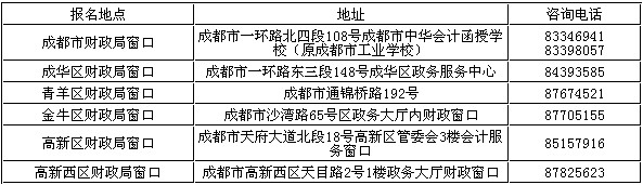 考試合格考生領(lǐng)證地點,即為報名時選擇的報名地點。中心城區(qū)分別設(shè)立:成都市財政局窗口、高新區(qū)財政局窗口、青羊區(qū)財政局窗口、金牛區(qū)財政局窗口、成華區(qū)財政局窗口。請考生按就近方便的原則在錄入報名信息時選擇確定。