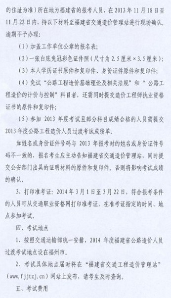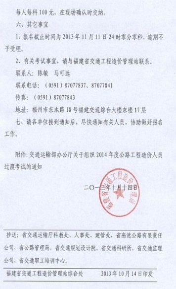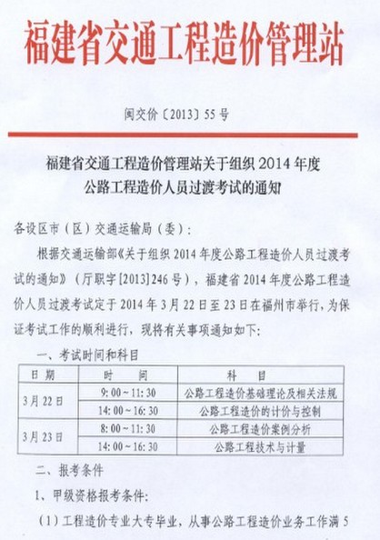 摘要 福建2014年公路工程造價人員過渡考試的通知