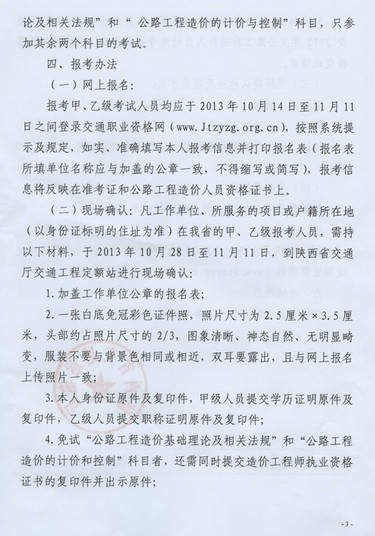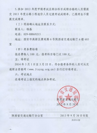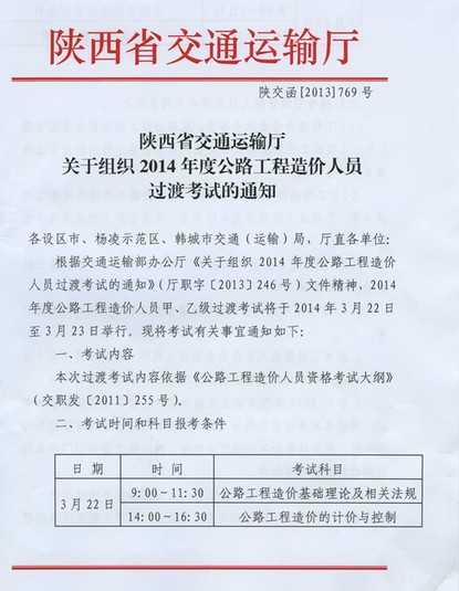 摘要 陜西2014年公路工程造價(jià)人員過渡考試的通知