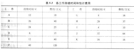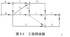 某施工單位編制的某工程網(wǎng)絡(luò)圖,如圖5-1所示,網(wǎng)絡(luò)進(jìn)度計(jì)劃原始方案各工作的持續(xù)時(shí)間和估計(jì)費(fèi)用,見表5-3。