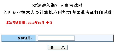浙江2013年10月職稱(chēng)計(jì)算準(zhǔn)考證打印入口