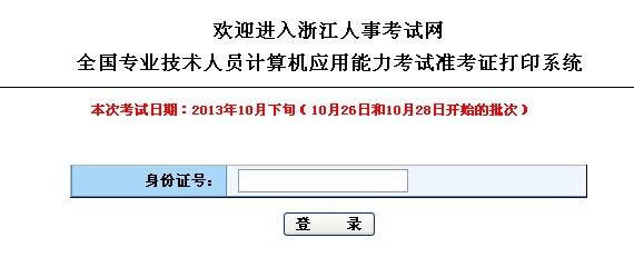 浙江2013年10月下旬職稱計算機考試準考證打印入口