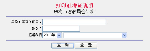 2013年下半年珠海會計從業(yè)考試準考證打印入口