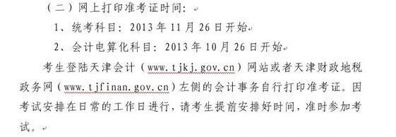 2013年下半年天津會計電算化準(zhǔn)考證打印時間