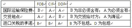 3. 請選擇三個貿易術語的含稅情況(含稅情況表示為:A. 價格中包含進口關稅; B. 價格中不包含進口關稅。)