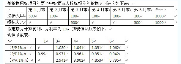 投標人乙500×(P/F 1% 3)+500×(P/F 1%6)