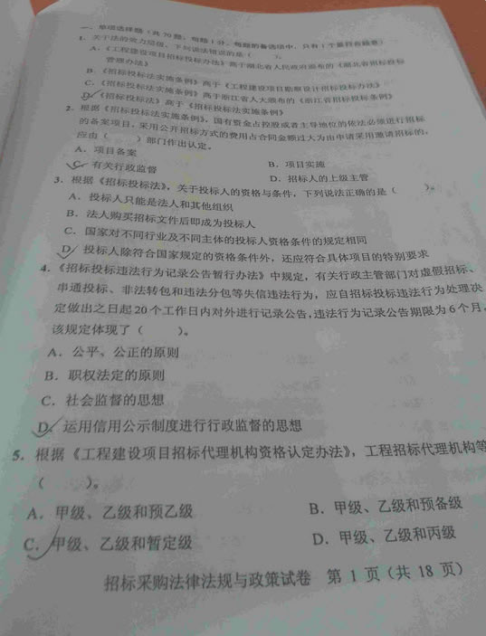 - 2015招標(biāo)師考試《法律法規(guī)》真題答案(網(wǎng)友版3)2015-11-09
