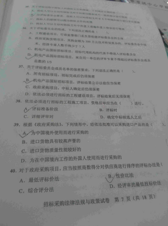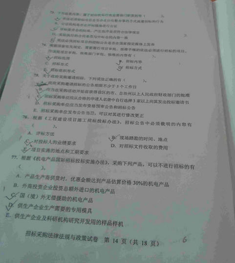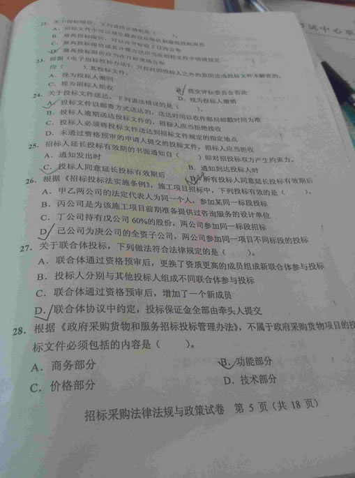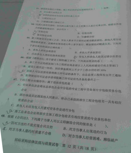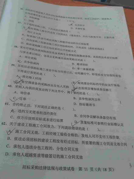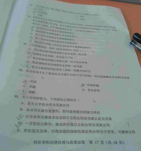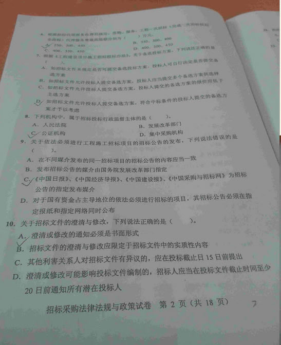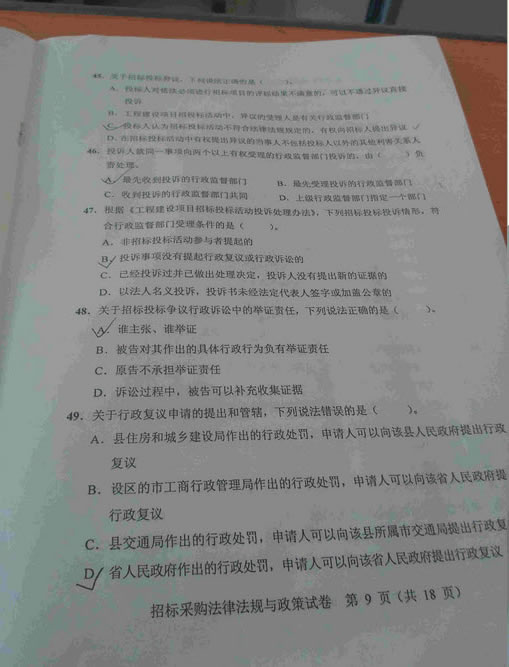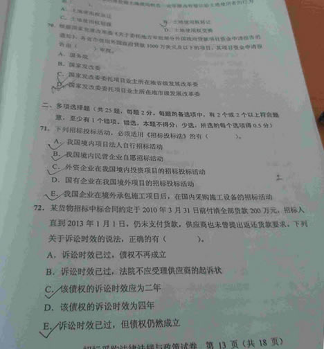 - 2015招標(biāo)師考試《法律法規(guī)》真題答案(網(wǎng)友版2)2015-11-09
